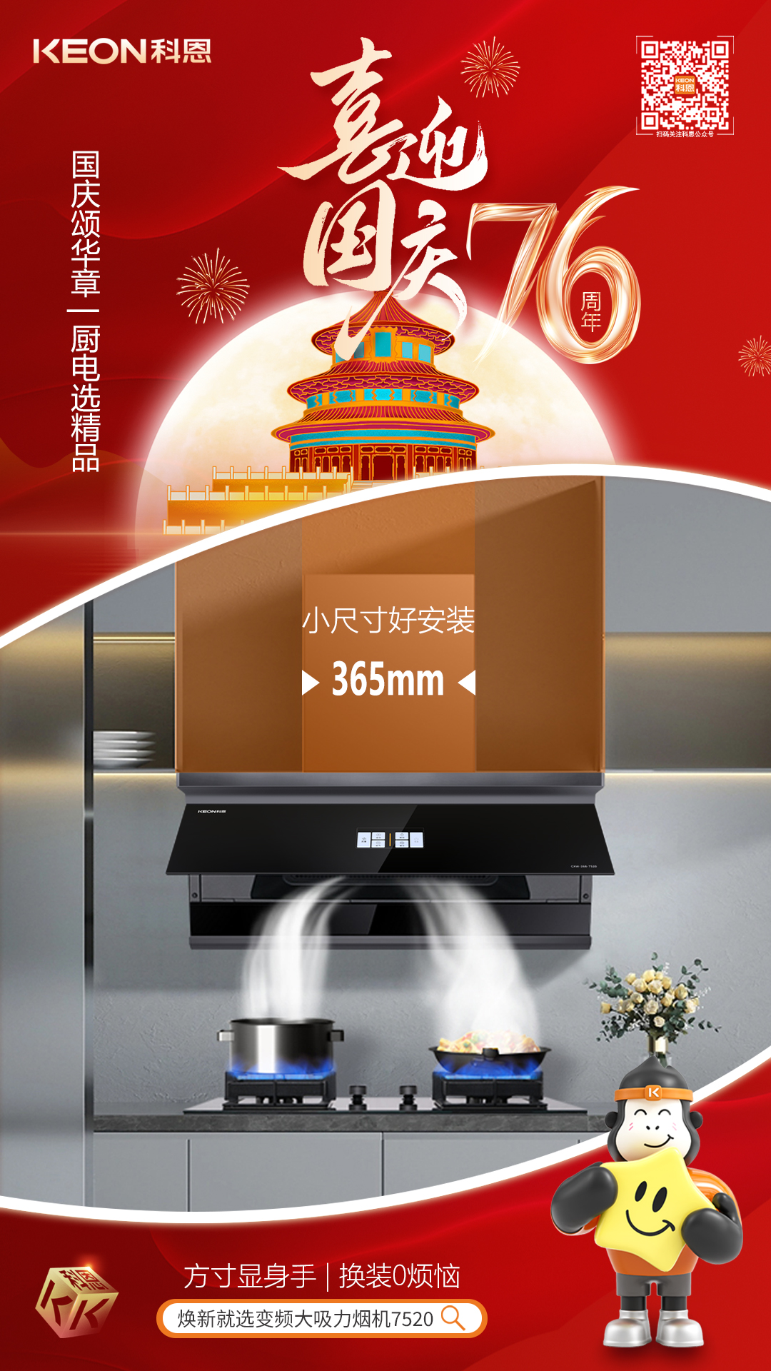 盛世華誕,家國同慶??贫鲾y品質(zhì)廚電,以科技賦能團圓時(shí)刻,重塑廚房呼吸美學(xué)。讓爆炒油煙遁于無(wú)形,讓家宴烹飪既高效又安心,守護每個(gè)家庭的假日煙火溫情。