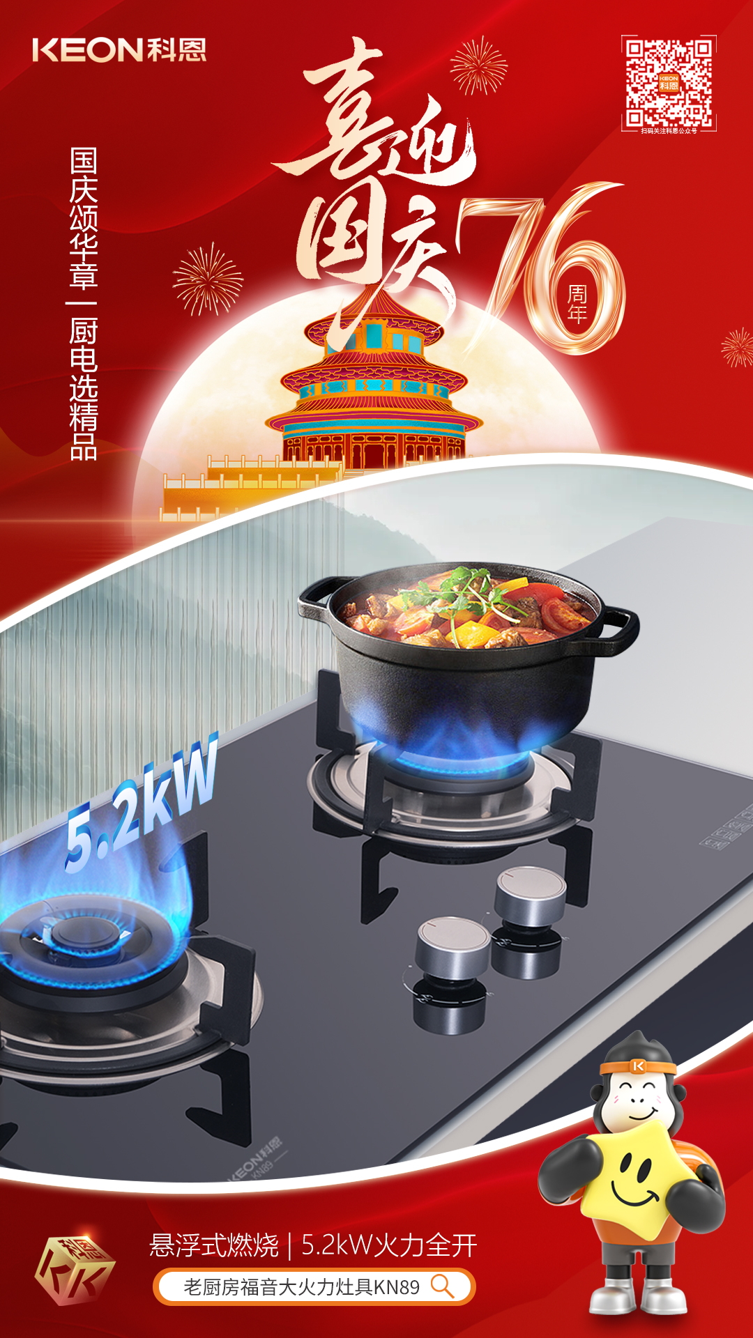 盛世華誕,家國同慶??贫鲾y品質(zhì)廚電,以科技賦能團圓時(shí)刻,重塑廚房呼吸美學(xué)。讓爆炒油煙遁于無(wú)形,讓家宴烹飪既高效又安心,守護每個(gè)家庭的假日煙火溫情。
